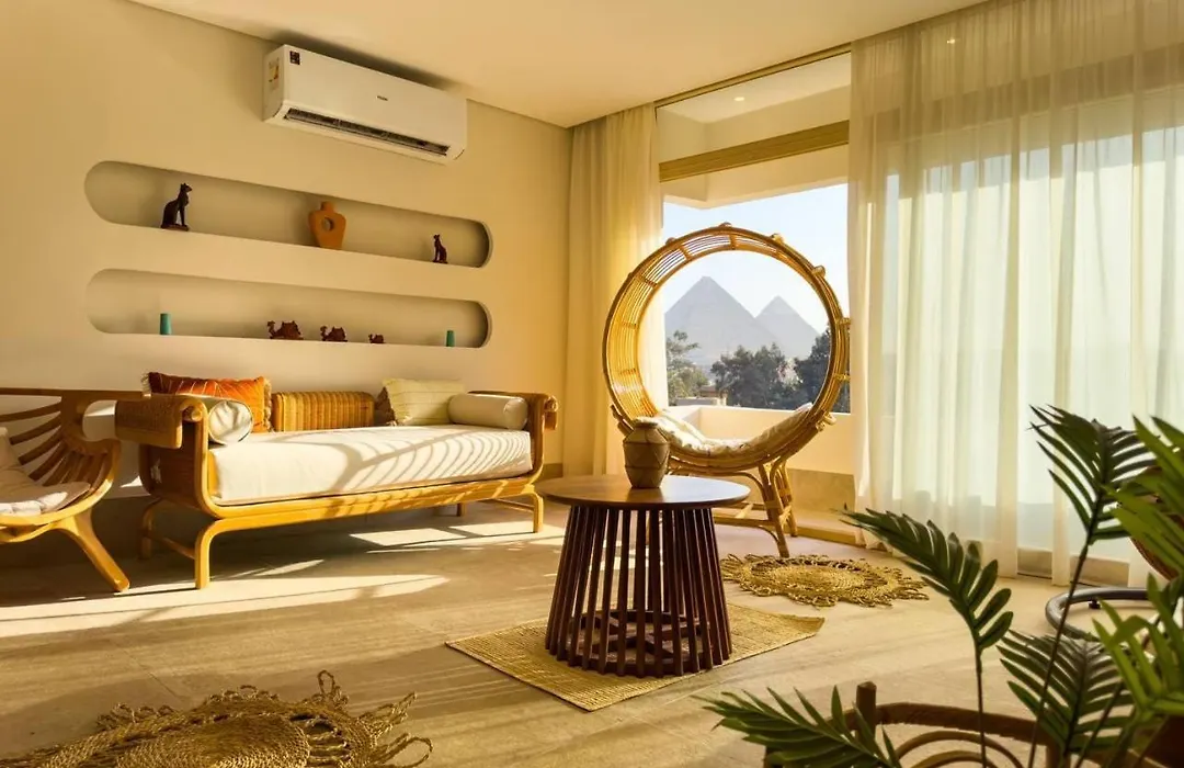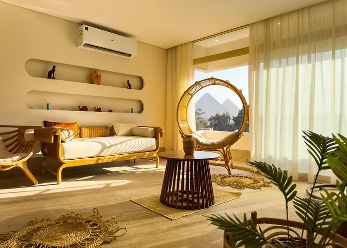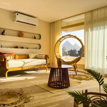 Bohemian Oasis With Pyramids View Ancient Bohemian Giza Khan Cairo apartment is around 25 minutes' walk from the archaeological Grand Egyptian Museum. The apartment features a patio that overlooks the city.